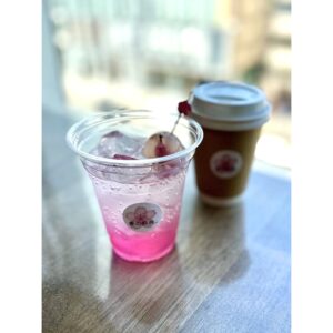 コチラ 桜塩漬け入ゼリーをのせて ラムとブラッドオレンジ、ソーダ で御座います。 元々のドリンク代に プラスしても飲める…