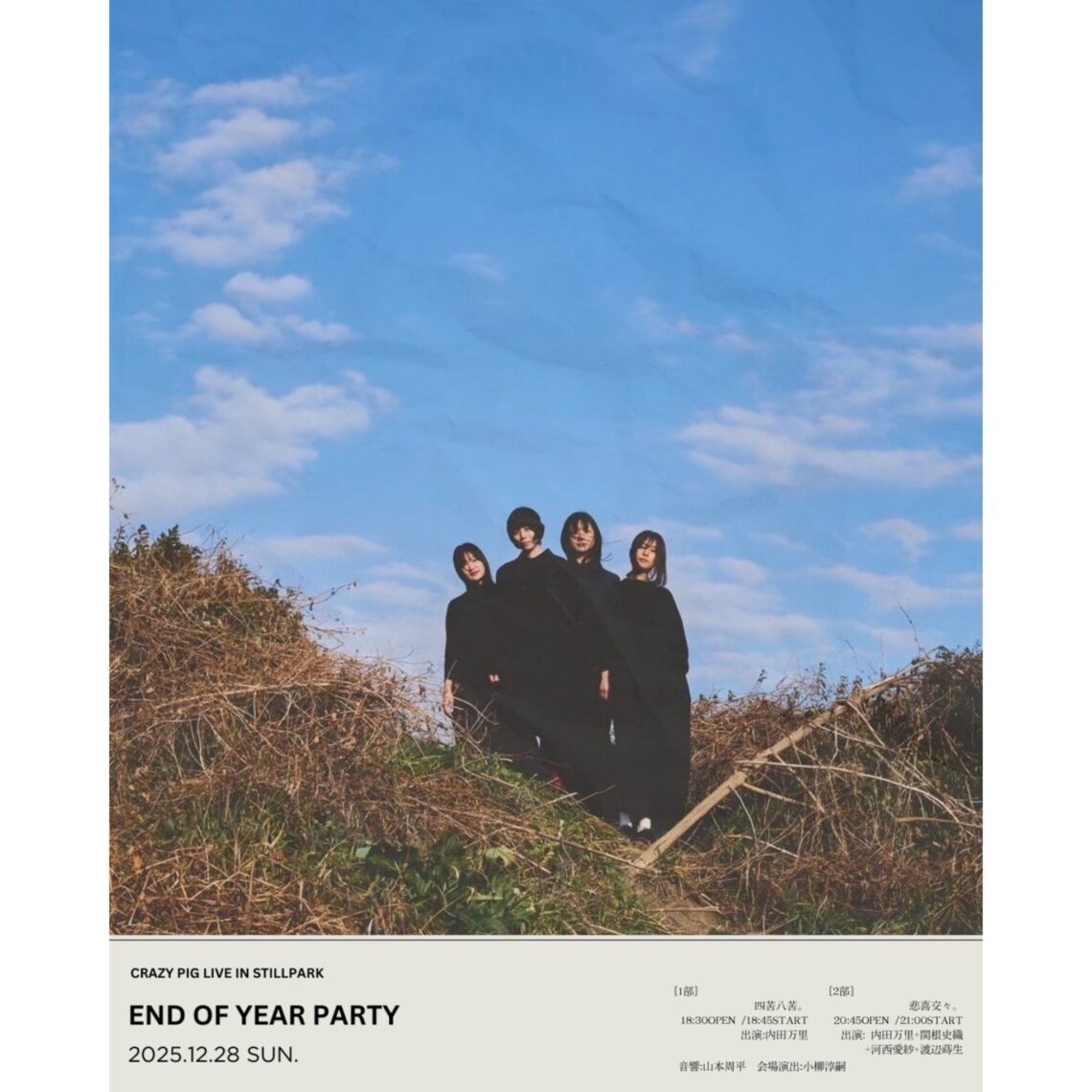 素敵フライヤー 作ってもらってしまった! 橋口さん(STILL PARK) ありがとうです。 改めて 笹原さんの写真も 素敵だなあ。 今年もいろんなもの 作れて携われて 嬉しかったなあ。 しみじみしじみ。 そんではラスト…